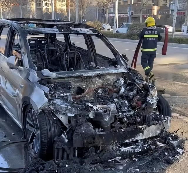 1月29日,山东济南一辆理想L9在路边发生起火事件。网传视频显示,当时是从车辆头部起火燃烧,逐渐蔓延到整个车身,火势非常猛烈。随后消防人员到场将大火扑灭,车辆前舱烧成一片灰烬。所幸无人员伤亡。