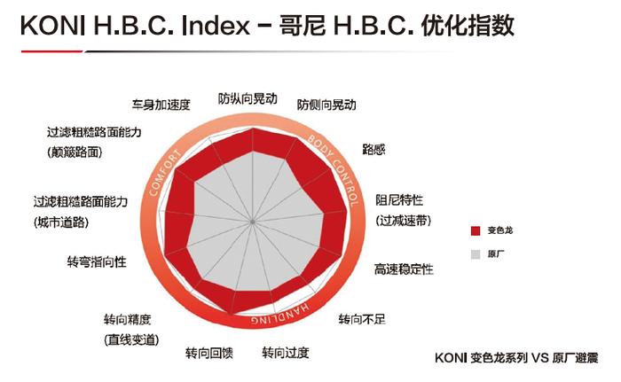 KONI变色龙系列搭配原厂弹簧时,可以达到最佳舒适性和运动性的平衡。