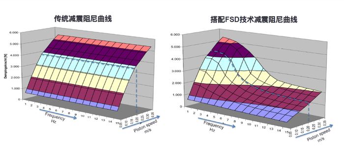 简单来说,低速颠簸路面降低阻尼,高速平坦路面升高阻尼。