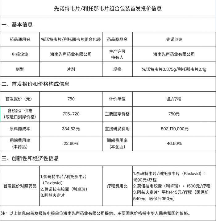 根据《国家医疗保障局办公室关于印发<新冠治疗药品价格形成指引(试行)>的通知》(医保办发〔2023〕2号)要求,现将海南先声药业有限公司先诺特韦片/利托那韦片组合包装首发报价有关信息进行公示。公示时间为2023年1月31日至2月6日,如有异议,请于公示期内通过以下方式实名提出,并提供合法有效证据材料(单位名义提出需加盖公章)。未提供相应证据材料的,原则上不予受理。