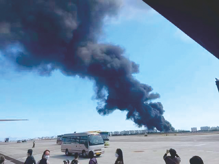 1月30日,三亚凤凰国际机场附近发生火情,现场浓烟滚滚。