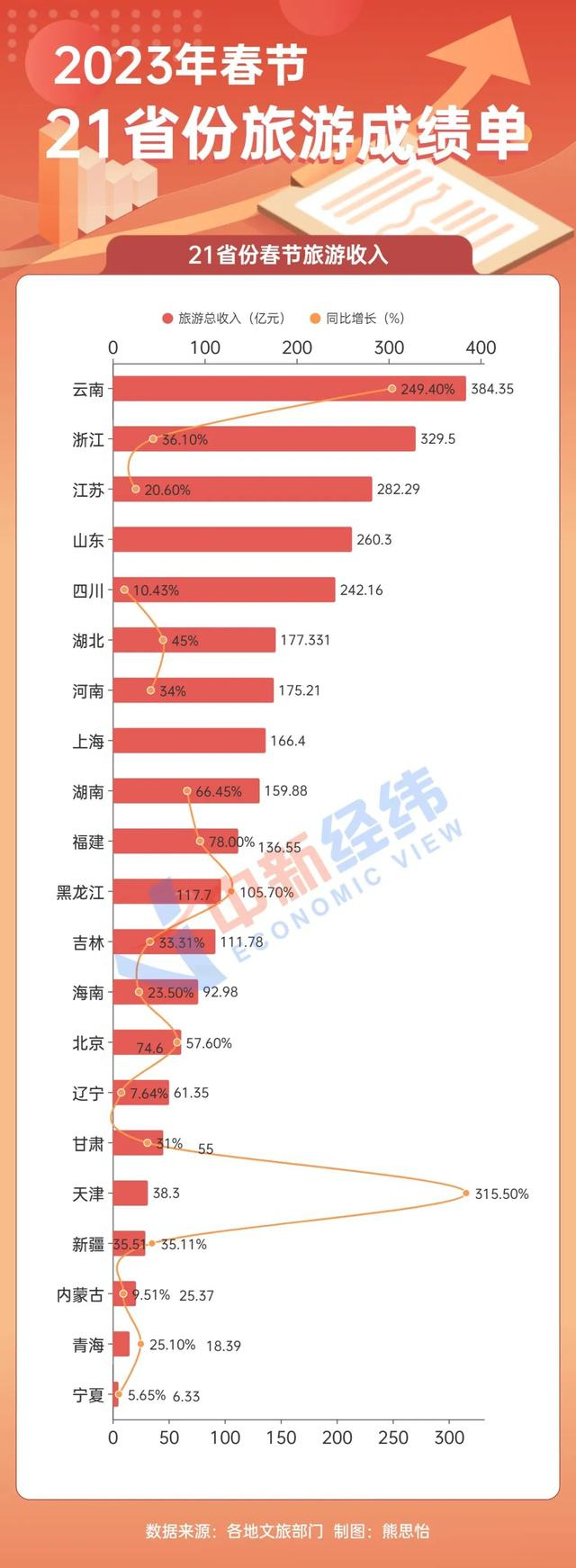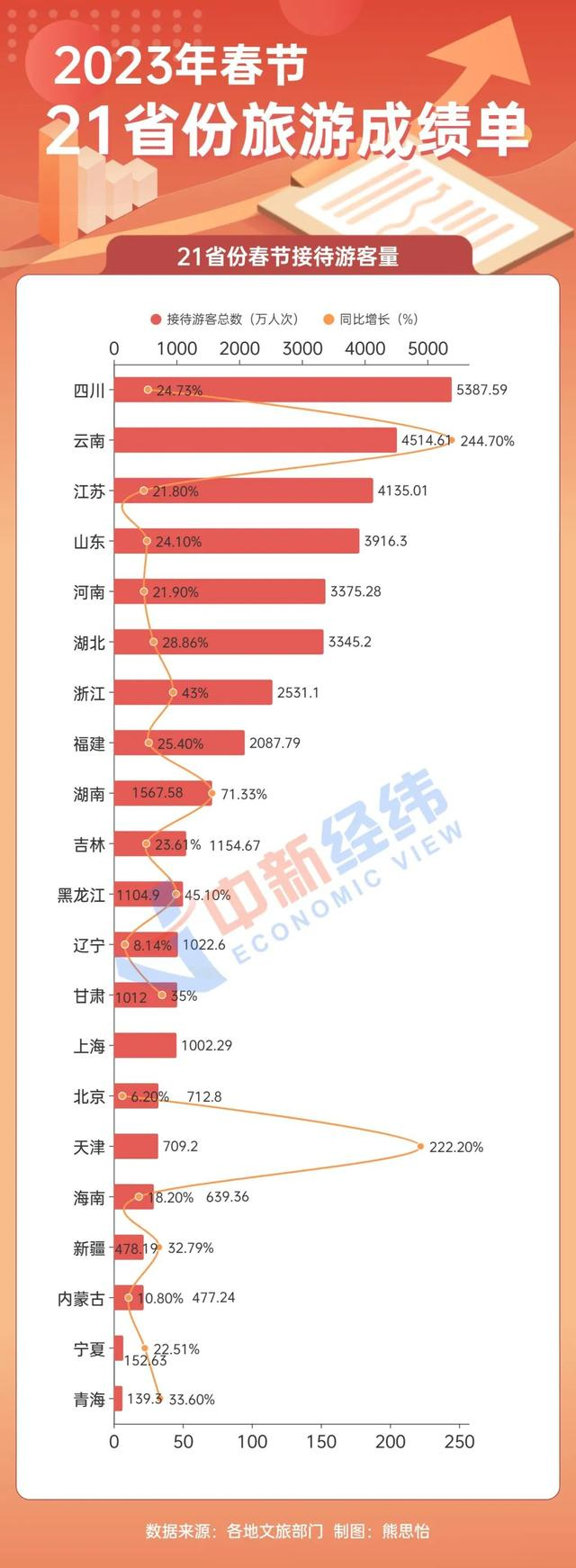 2023年春节假期刚刚结束,21省份已迫不及待交出旅游成绩单,你的家乡表现如何?来一睹为快!