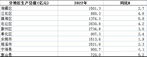 分区(县、市)看,鄞州区实现地区生产总值2734.8亿元,总量位居各区(县、市)首位。镇海区以5.9%的增速位列区(县、市)增速榜首。