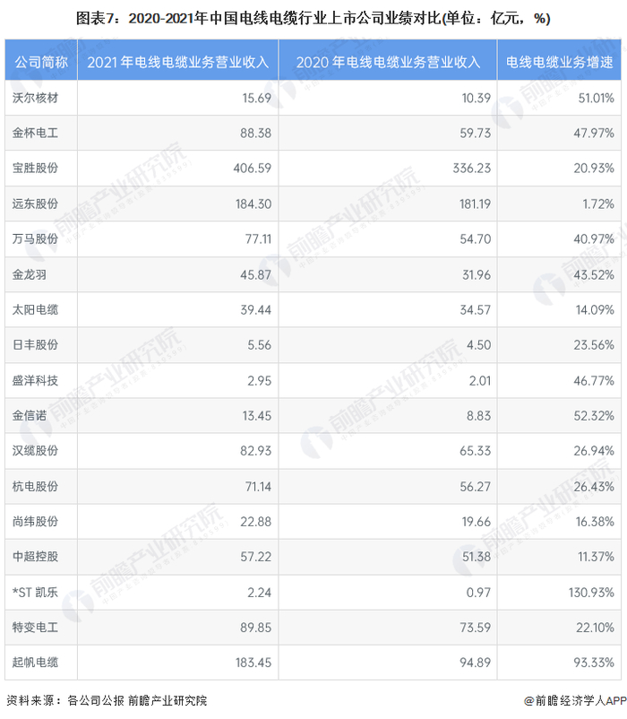 本文核心数据:中国电线电缆行业上市公司营业收入及其增速