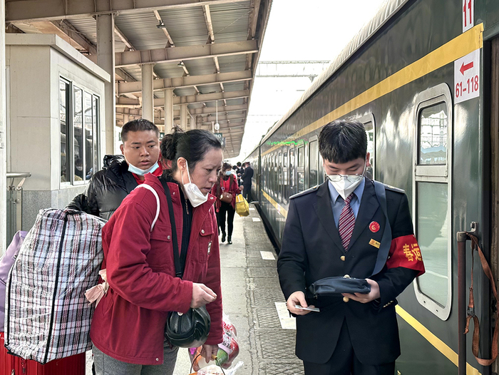 2023年1月29日,四川南充,500余名南充籍务工人员,从南充站乘K4734/4731次“共青团号”列车至深圳东返岗务工。