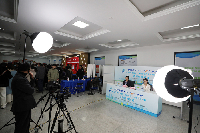 2023年1月28日,河北省秦皇岛市,聚贤人才市场内,工作人员使用网络平台进行直播带岗。曹建雄 摄