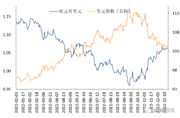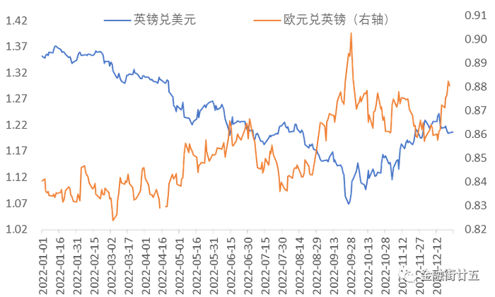 2022年,俄乌冲突爆发激化了欧洲能源短缺,欧元区通胀压力超越美国,滞胀风险带动欧元大幅走低。展望2023年,在美元走弱预期之下,叠加能源价格回落,欧元对美元将大概率得到支撑。