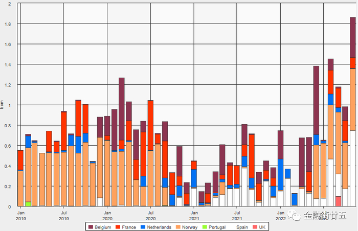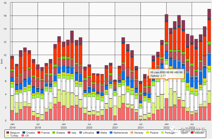 从欧元区主要国家天然气进出口情况看,主要国家均加大了天然气进口且减少了出口,而挪威等主要产气国明显加大了对周边国家的天然气出口,扩大各国天然气储能,为冬季用气做准备。