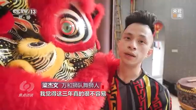 万和狮队舞狮人 粱杰文:我觉得这三年真的很不容易,作为企业的一分子,基层的一分子,迎来了很大的困难,所以我觉得这场舞狮意义非常重要。