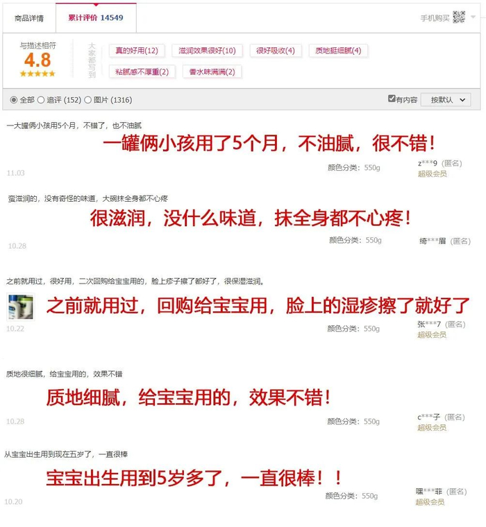 550g超大一罐,足足一斤多,宝宝湿疹要多涂厚涂,一家人用它做全身保湿……真是怎么用都不心疼,今年秋冬肌肤保湿护理,交给它妥妥的。
