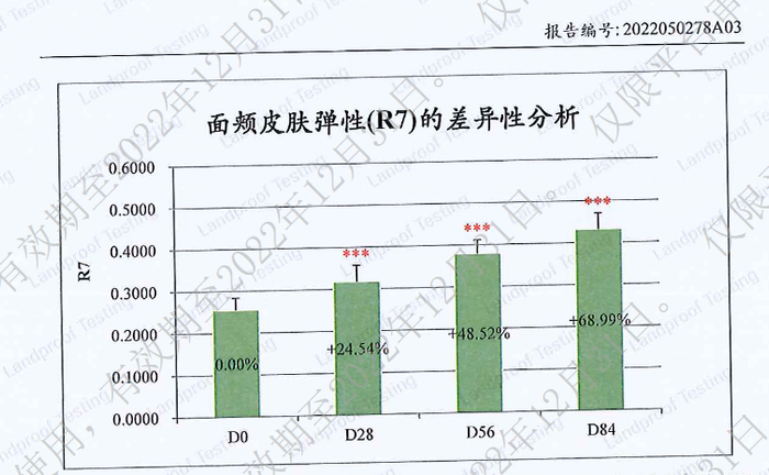另外,根据第三方功效检测显示,34 名受试者按照每天 6 分钟,一周 5 天,使用 12 周之后,真皮层厚度 +33.32%。