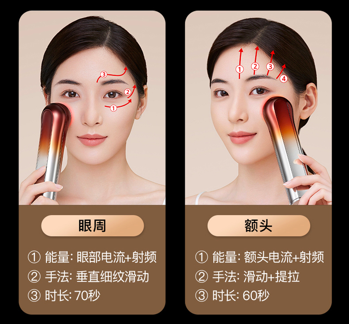 1. 眼周肌肤娇嫩,四周还有骨性突起,使用时要注意避开眼球、上眼睑等眼眶骨内的区域。