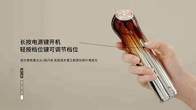 对于美容仪新手来说,建议可以从抵挡开始,再慢慢逐步适应其他档位。其中 1~3 档位,是全脸操作的。而 4 档也就是前面提到的 POWER 模式,建议大家要按照「下颌线」-「苹果肌」-「眼周」-「额头」的路径使用,每次需要换位置的时候,机器都会有滴声来提示你。