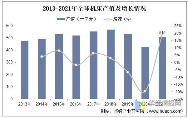 根据VDW(德国机床制造商协会)数据,2013-2021年,全球机床产值呈现出波动变化走势,得益于疫情后全球经济的复苏,2021年全球机床产值约为5120亿元,同比增长20%。