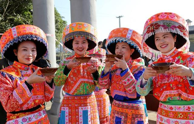 “朋友啊,请喝一杯苗家美酒,苗家美酒;愿友谊天长地久,天长地久。”1月30日,苗家祝酒歌伴着清冽甘甜的米酒,飘香在四川省泸州市叙永县合乐苗族乡兴复村踩花山上,苗族同胞自发在苗家新村蚩尤广场上举行新春踩山节,苗家咪哆咪彩吹笙敬酒,欢迎宾客进寨。