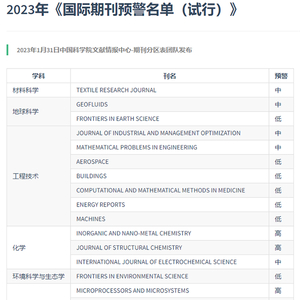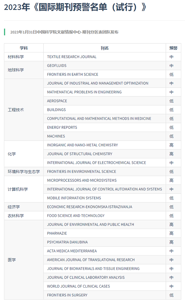 2023年1月31日上午,2023年《国际期刊预警名单(试行)》正式“出炉”。