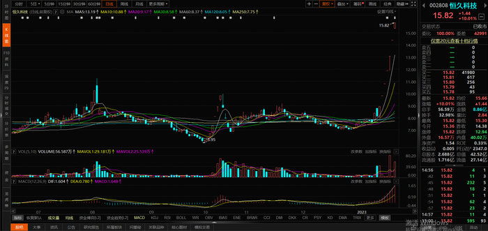 个股方面,恒久科技7连板领涨市场,北交所天宏锂电及创业板赛为智能均2连板,爱仕达、同为股份、达意隆3连板。