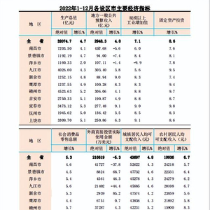 根据地区生产总值统一核算结果,2022年江西省地区生产总值32074.7亿元,突破3万亿元大关,增量为2246.9亿,同比增长4.7%,实际增速全国第一。高出全国平均水平1.7个百分点,继续保持在全国前列,全省经济呈现持续恢复、稳中有进的态势,全国排名由第18位前移至第15位。