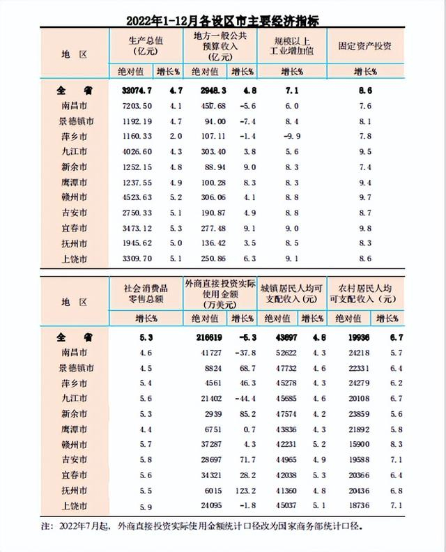 南昌突破7200亿元!2022年江西各设区市GDP排行榜出炉