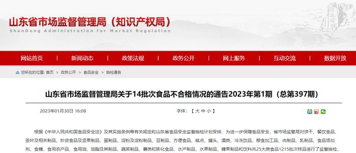 中国质量新闻网讯 据山东省市场监督管理局网站2023年1月30日发布的通告,该局对25大类食品1215批次样品进行了监督抽检。其中,抽检红薯粉条等淀粉及淀粉制品32批次,全部合格。