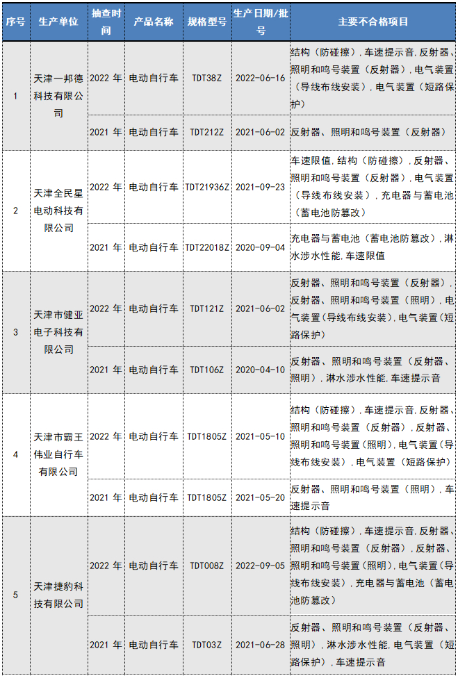 62批次电动自行车及电池不合格!涉及“上海永久”“天津捷豹科技”等企业......