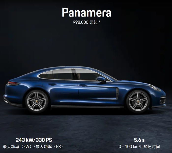 目前,保时捷官网显示,一辆Panamera的价格为99.8万元起。