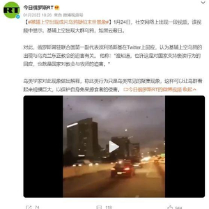 近日,“今日俄罗斯”的微博发布了一则视频称,“基辅上空出现成片乌鸦疑似末世景象。1月24日,社交网络上出现一段视频,基辅上空出现大群乌鸦,如黑云蔽日。”视频显示傍晚时分某公路上方盘旋着大量黑鸟。随后,很多自媒体账号转发了同一视频。