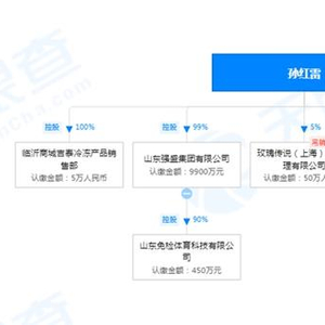 孙红雷对山东强盛集团有限公司持股99%,山东强盛集团有限公司旗下拥有山东免检体育科技有限公司,持股90%,属于绝对控股。