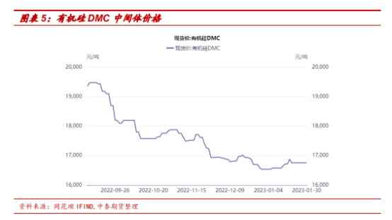 有机硅方面,节后需求有望提升。据卓创资讯统计,1月30日山东部分厂家DMC报价16800元/吨;其他厂家报价17000-17500元/吨。近期新增有机硅产能多以及终端市场需求疲软,厂家目前成本倒挂。节前多家单体生产企业停产检修或降负运行,整体行业开工率不高。市场对地产、基建等终端消费存在经济复苏预期,预计春节后随着终端市场回暖,预计有机硅需求量会逐渐提高,从而提振价格。