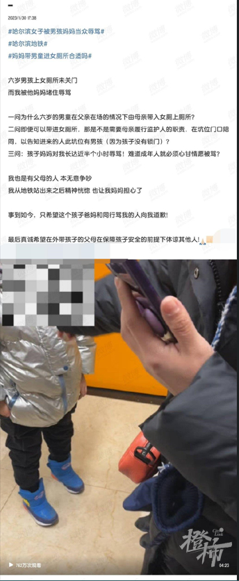 橙柿互动讯 1月31日,微博热搜有条内容是关于6岁男孩上女厕所的事情。