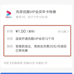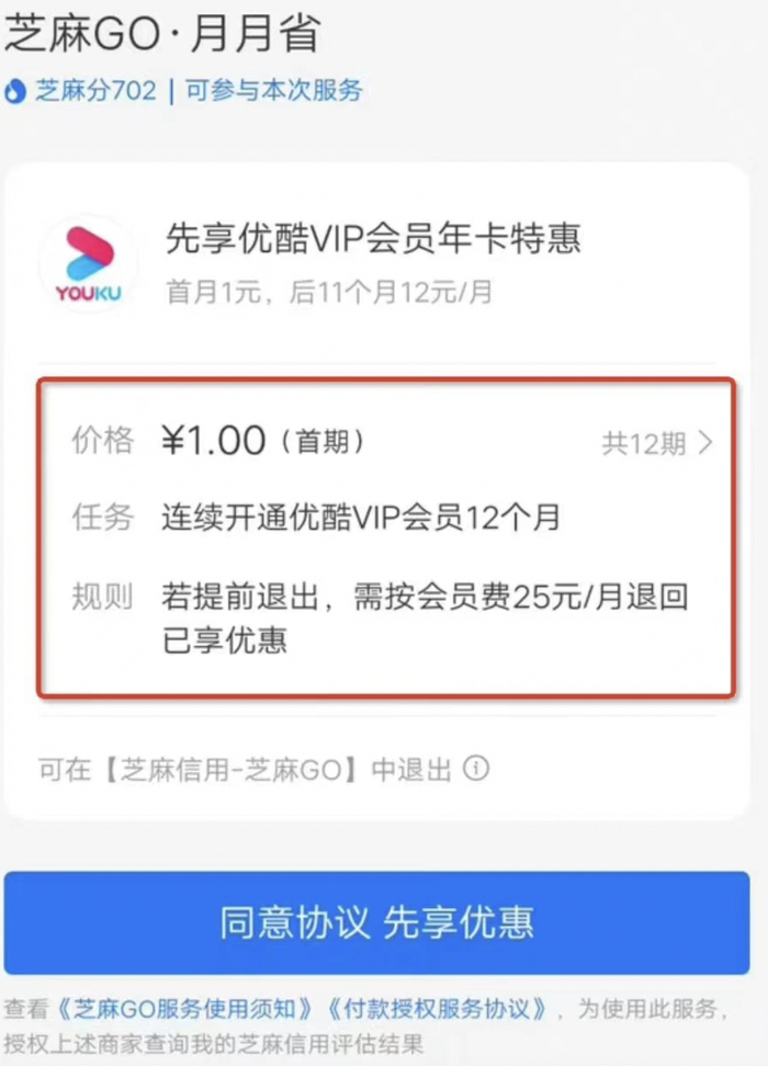 近日,有网友反映在参与优酷“1元会员”活动后,支付相应页面中弹出的规则为“优酷月月省”活动界面,支付1元后默认签约1年,除首月外,每月将自动扣费12元。随后,优酷方面对外回应称:“1元会员”指的是优酷VIP月月省活动,是优酷推出的会员优惠产品,相关页面已对活动规则进行明确告知:首月1元,后11个月12元/月,若提前退出,需按会员费25元/月退回已享优惠。