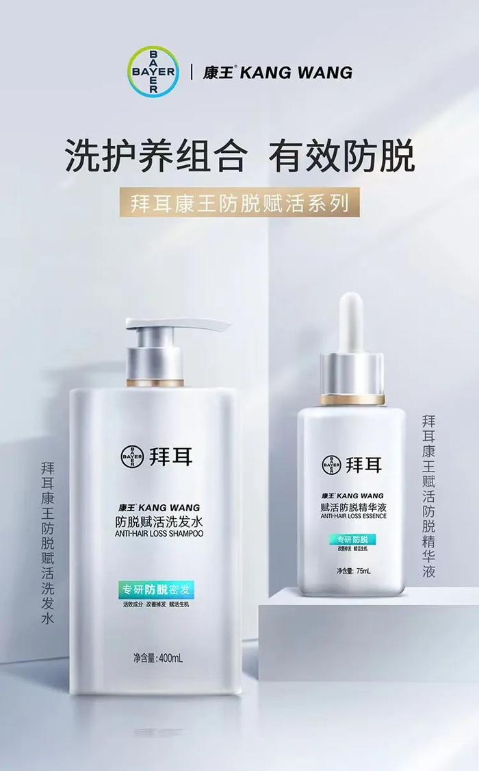 概括来说就是:功效报告显示,拜耳康王赋活防脱精华液,可以帮助减少掉发;拜耳康王防脱赋活洗发水,可以帮助改善掉发、减少断发。