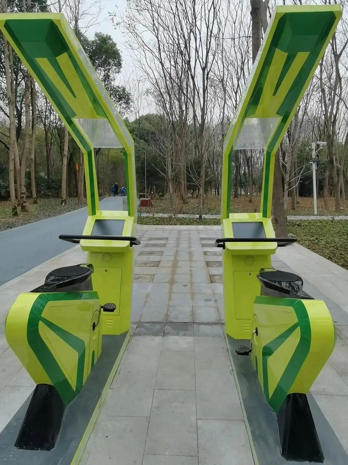 丰翔智秀公园的动力单车,骑行后前方会喷出水柱