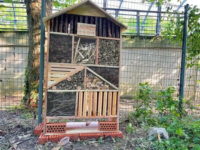 给昆虫住的旅馆,你见过吗?这也是“适儿化”改造倡导的自然教育承载场所。在丰翔智秀公园和辰山植物园里,记者见到了两座以昆虫为主要“顾客”的“旅馆”。“昆虫旅馆”采用自然材料、依照昆虫的习性搭建而成,供它们繁衍、栖息及越冬所用。三角形的屋顶设计,让“旅馆”可以在雨天快速排去水分。旅馆内,一些富有设计感的“房间”分别由木屑、枯木枝条、有空洞的竹子、掉落的松果、瓦片等材料筑成,供昆虫和小型爬行动物居住。辰山植物园表示,“昆虫旅馆”的概念起源于欧洲,旨在唤醒大家保护昆虫的意识,建成后已有很多亲子家庭体验过制作“昆虫旅馆”的乐趣。
