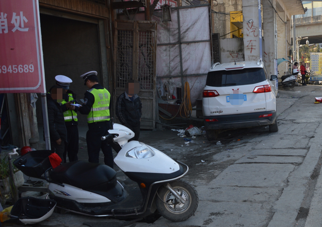 1月29日下午,黔西南州公安交通管理局晴隆县公安交警大队指挥中心接到报警,称沙子镇加油站处发生一起交通事故,一位驾驶人驾车突然冲上人行道,撞伤一位行人,撞坏一辆摩托车,请出警处理。