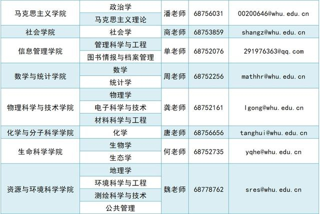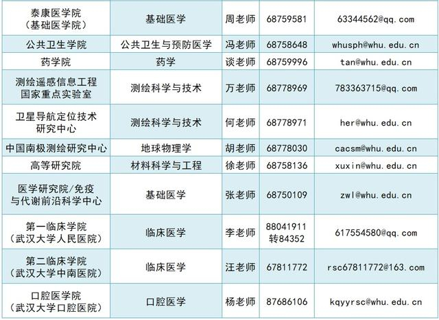 1.武汉大学各单位联系方式
