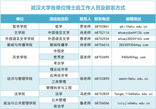 2.学校人事部博士后管理办公室联系人:蒋老师、李老师,电话:027-68754011、027-67811556