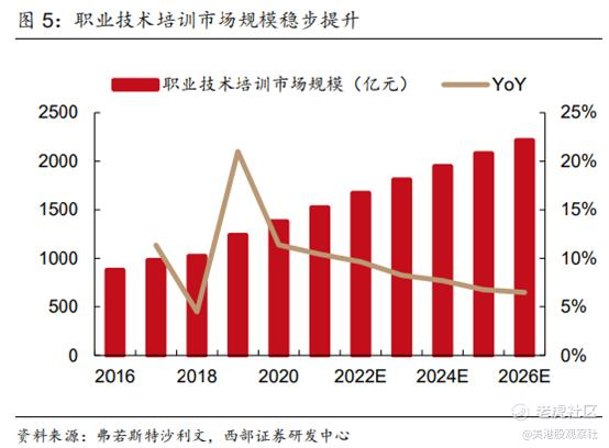 其实我们从职业教育的行业来看,丽翔教育的转向不仅满足监管要求,还有广阔的发展前景。根据弗若斯特沙利文的数据,为什么职业技术培训市场规模持续增长,预计市场规模将从2021年的1500亿元增长至2026年的2000亿元。