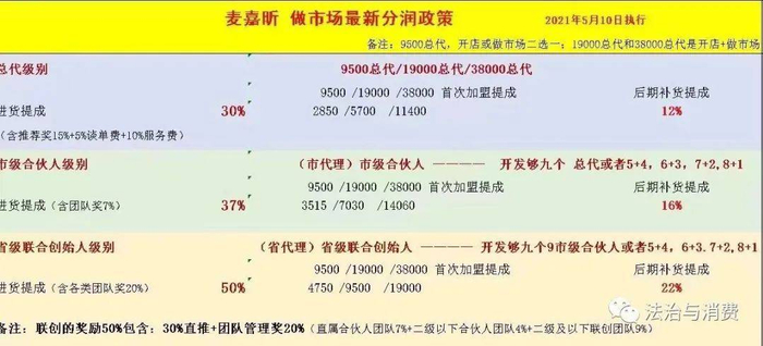省代团队分红:50%(含直推30%,各类团推奖励20%);后期补货提成22%;