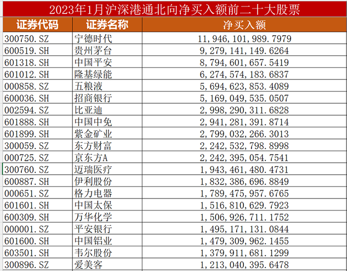 据统计,2023年1月,北向资金单月累计净买入1412亿元,比去年全年900.2亿元的累计净买入额还高出56.85%,创下沪深港通开通以来纪录。与此同时,上证指数全月上涨5.39%,创2010年以来最强开局。