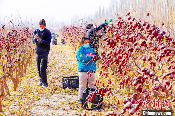 丰富的光热资源使新疆具有得天独厚的种植优势,从其他省区过来的红枣品种无一例外地“青出于蓝而胜于蓝”。 买买提艾力·艾尼瓦尔 摄新疆南部若羌、洛浦等县市的红枣更具特色,当地由于气候干燥,几乎没有病虫害,每一个未成熟的枣子上面,都覆盖着一层来自塔克拉玛干沙漠的灰尘。在当地,有一种自然干挂在树上的红枣,树上吊干的过程中,枣子的糖分可以迅速发展集聚,精华全锁在肉里,含糖量高达70%以上。收获时只要轻轻摇晃果树,枣子就像落叶般簌簌落地。这种红枣一口咬下去,皮薄肉厚,肉质致密较脆,即使煮汤,可保持皮不破,颗颗圆滚滚,枣味十足!政府支持新疆红枣更“红”从原枣到加工枣,从枣类食品到含枣食品,适应消费者需求,新疆红枣正从外到内不断变身,和着消费市场的节拍,演绎着“七十二变”,产品包装也从简单粗放到时尚新潮。新疆一些红枣加工企业立足创新、瞄准健康,适应消费者口味,产品越来越丰富,更有包装精美的小罐装红枣,这类红枣品牌标志醒目、产品辨识度高,让人一眼就能记住。