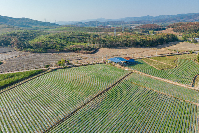 由于采用了新技术,这些傣族工人的劳动强度大大降低了,如整地覆膜全部机械化,滴灌水肥一体化,打农药用无人机,节省了很多人力。