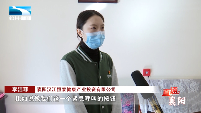 襄阳汉江恒泰健康产业投资有限公司 李洁菲:“比如说像我们这一个紧急呼叫的按钮,在老人的家中安装助浴椅、马桶、助力架以及安全扶手,让老人在家中也可以享受到,在养老院一样专业的适老环境,”