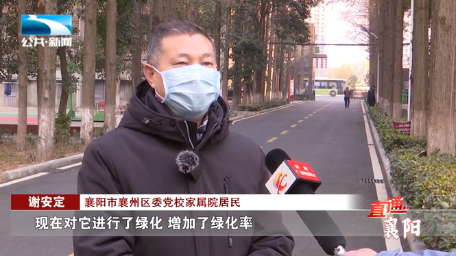 襄阳市襄州区委党校家属院居民 谢安定:“原来那儿铺的是彩砖,是硬化的,现在对它进行了绿化,增加了绿化率,居民对这个事也是非常满意,确实是解决了大家的所盼,所想。”