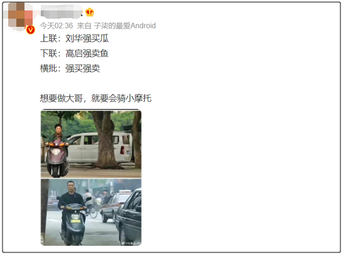 要知道,孙红雷可是在《征服》里演过黑帮老大刘华强的,这是什么样的缘分啊……于是脑洞大开的网友们想出了下面这样一幅对联。