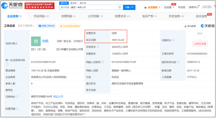 根据天眼查,四川汉龙(集团)有限公司法人的法定代表人为刘枫,经营范围广泛涉足房地产开发、资源开发、医疗器械、基础设施建设、计算机软件及网络技术的风险投资等领域。