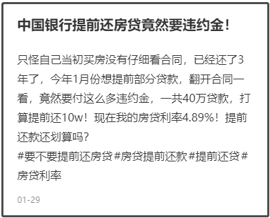 除此之外,提前还贷还要注意的一个点就是违约金,很多银行并不愿意购房者提前还贷,所以会设置各种门槛,甚至会用违约金来阻止他们。