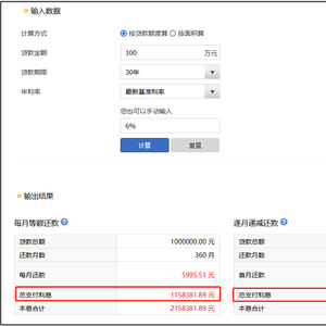 做道算术题,100万的贷款,分30年,以6%的房贷利率计算,我们能够发现: