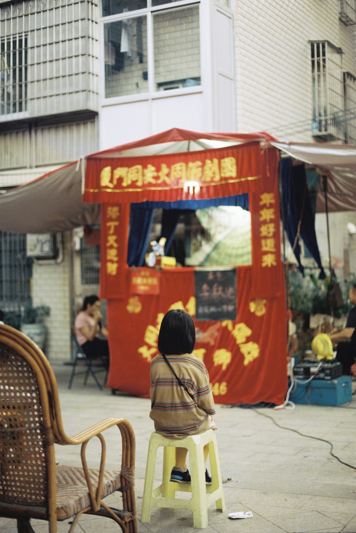 新年正是大社最热闹的时期。大社正中心的宗祠广场,一群孩子奔跑着玩礼花鞭炮,玩社区组织的新春游戏。有时一阵锣鼓喧嚣,戏台上搭台开始上演黄梅戏或南音,有时又是一场布袋木偶戏在街角搭出小小的临时舞台,吸引孩子和寻访年味的游人驻足。