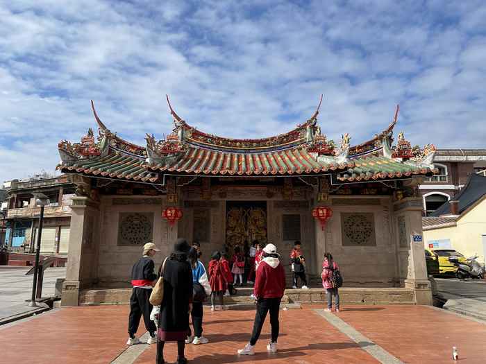 在宗族制度下,这些被称为“角头”的聚集地,都有一处宗祠古厝,一年到头举办不同的祭祀活动。岁末年初,正是宗长忙碌的时候,家家户户的祭祀、宗祠内的庆典和民俗活动应接不暇。最热闹的是即将于正月十五开启的“刈香巡游”,每个角落都会举起属于自己的旗子参与巡游,来到大社中心的陈氏宗祠。始建于1343年的陈氏宗祠,1950年由陈嘉庚出资重修,建筑前殿抬粱构架,两坡屋顶铺上绿色橙色相间的琉璃瓦,木质雕刻很精巧。